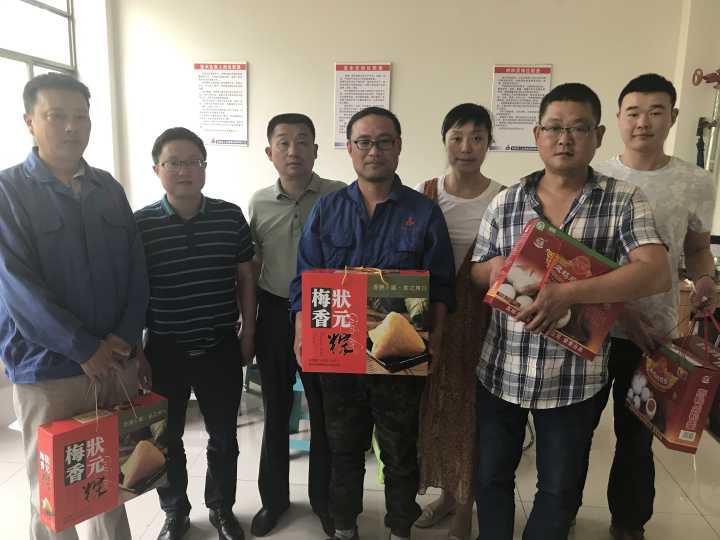 一個粽子,一份情,一片心。端午節(jié)來臨之際,蚌埠分公司領(lǐng)導(dǎo)班子一行深入蚌埠卷煙廠項(xiàng)目部、合肥五糧泰項(xiàng)目部慰問節(jié)日期間堅(jiān)守崗位的一線員工,同時送去了粽子、咸鴨蛋等節(jié)日慰問品。