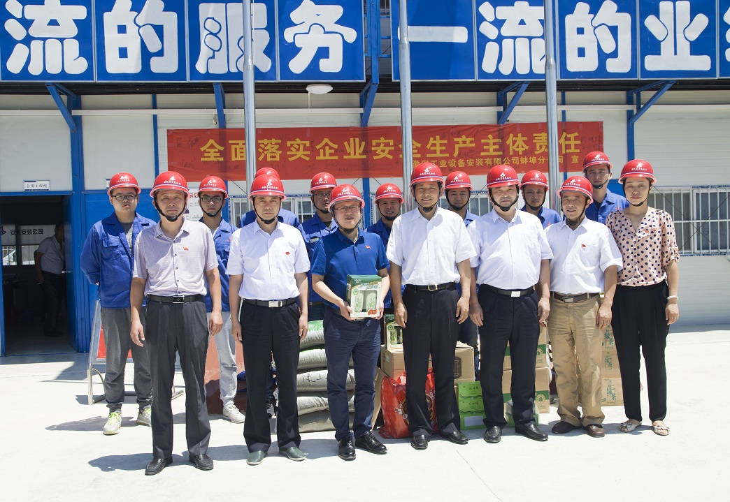 炎炎夏日送清涼,絲絲關愛寄深情。為確保基層一線職工安全度夏,7月21日上午,集團公司黨委副書記牛曙東冒著高溫酷暑,在黨委工作部主任徐文聯(lián),安徽安裝公司董事長、總經理王軍邦,紀委書記、工會主席李寬旭的陪同下,到安徽安裝公司蚌埠卷煙廠項目,為堅守在高溫下工作一線的干部員工送去了“清涼”和集團黨委親切的慰問,同時還為黨員干部、入黨積極分子上了一堂別開生面的黨課。