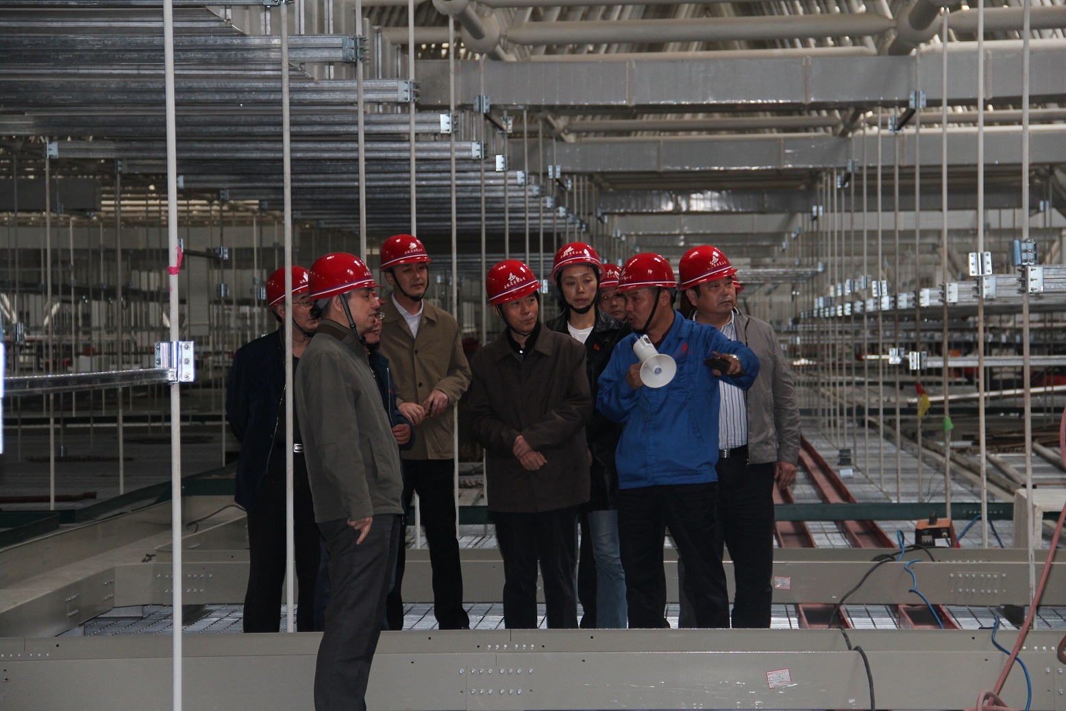 徐曉光主席一行利用中午休息時(shí)間,深入施工現(xiàn)場(chǎng)進(jìn)行實(shí)地察看,對(duì)施工工程質(zhì)量、安全生產(chǎn)給予了充分肯定,并對(duì)項(xiàng)目進(jìn)展等情況進(jìn)行了解。隨后,驗(yàn)評(píng)組仔細(xì)查看了項(xiàng)目職工生活區(qū)、員工食堂、宿舍、職工活動(dòng)室和籃球場(chǎng)等場(chǎng)所。