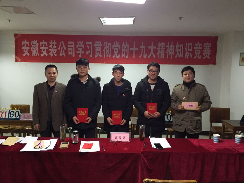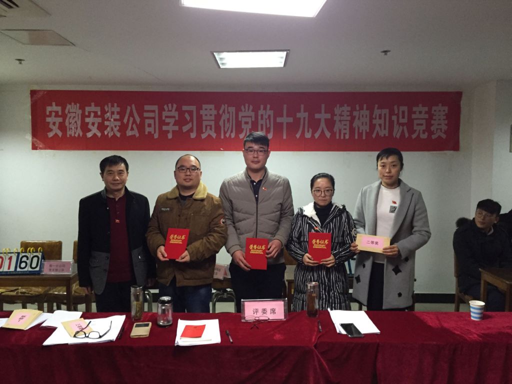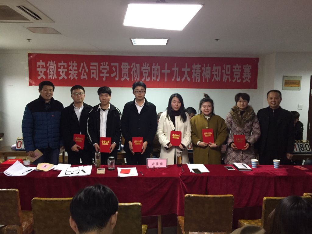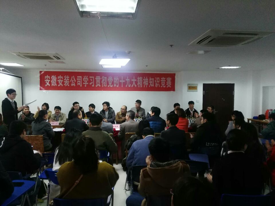 12月6日下午,安徽安裝公司學(xué)習(xí)貫徹黨的十九大精神知識競賽成功舉辦。來自公司機關(guān)及所屬各分公司黨支部8支代表隊24名選手參加比賽。