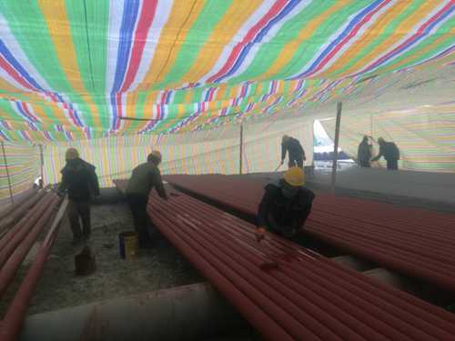 管廊整體搭設(shè)棚子,防止鋼結(jié)構(gòu)上出現(xiàn)雪和霜