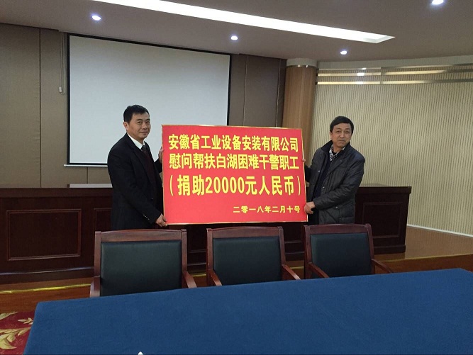 會上,李寬旭代表安徽安裝公司向白湖困難干警職工捐助慰問幫扶金20000元。