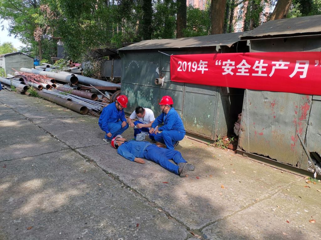 下午2點,隨著現場警報器長笛示警,應急救援演練拉開了序幕。施工班組負責人命令現場立即停止作業,所有施工人員撤離出吊裝現場,并立即撥打120急救電話報告現場安全員。在接到通知后,項目部立即啟動應急預案,并組織各小組進行救援。警戒組封鎖事故現場,維持現場秩序;醫療救護組對傷員進行了簡單的救治和護理;疏散組負責對現場與救援無關人員進行疏散,防止事態擴大。各組各司其職,演練現場井然有序,最后救護車輛和醫療人員趕到現場,將傷員送往醫院,演練活動結束。