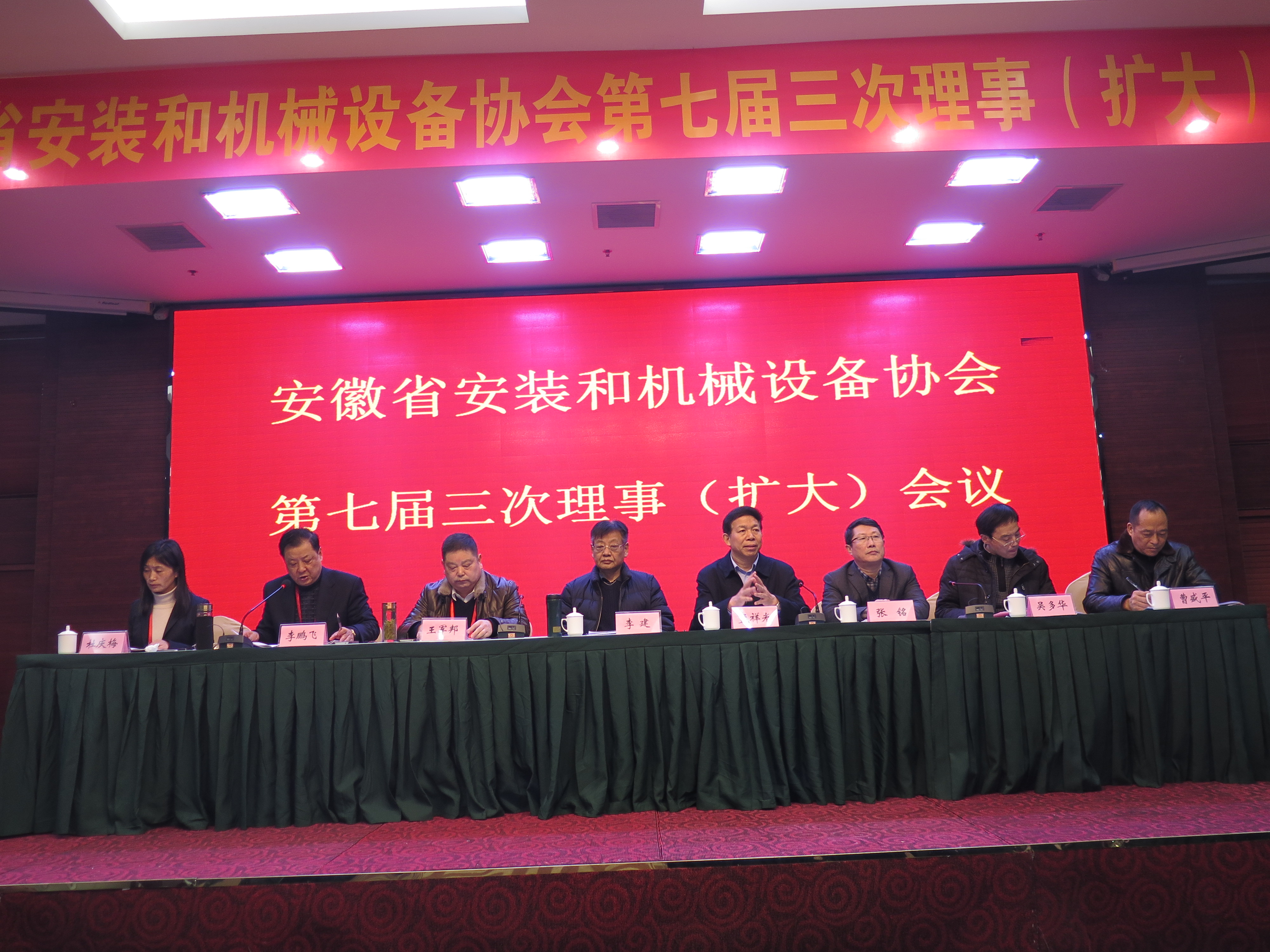 新年伊始,萬象更新,2019年1月3日-4日,安徽省安裝和機械設(shè)備協(xié)會在安徽蚌埠召開第七屆三次理事(擴大)會議。安徽建工集團有限公司總經(jīng)理助理、協(xié)會會長、法定代表人王軍邦,駐會副會長李鵬飛,秘書長杜慶梅,蚌埠市政協(xié)副主席、秘書長孟祥光,蚌埠市住建委黨委書記、主任張銘,安慶市建筑管理處副主任吳多華,六安市建筑工程質(zhì)量安全監(jiān)督站副站長曹盛平等領(lǐng)導(dǎo)出席會議。會議特邀安徽省政協(xié)常委、原安徽省住房和城鄉(xiāng)建設(shè)廳巡視員李建作建筑行業(yè)轉(zhuǎn)型升級發(fā)展的專題報告。各市縣行業(yè)主管部門負責人,副會長、理事和會員單位負責人、專家、聯(lián)絡(luò)員及受表彰的企業(yè)代表,受表彰的 2017-2018年度“協(xié)會之友”、領(lǐng)取職稱證書的企業(yè)代表等近300人參會。會議由副會長李鵬飛主持。