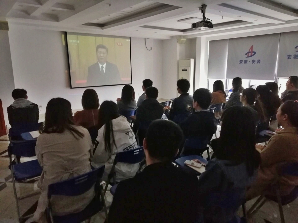 4月30日10時30分,紀念五四運動100周年大會在人民大會堂舉行。安徽安裝團委組織團員青年集中收看了大會直播,大會在莊嚴雄偉的國歌中拉開序幕,習近平總書記發表重要講話。
