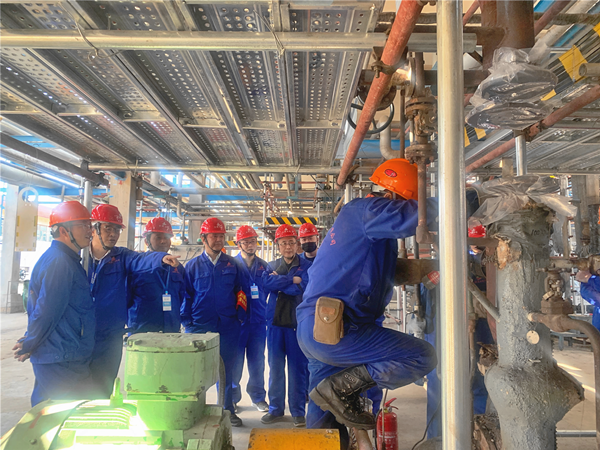 高飛、劉安俊一行深入項目一線,先后來到乙苯苯乙烯項目、煉油一部新增機泵密閉排放系統項目、催化裂解項目及Ⅰ、Ⅱ硫磺回收裝置增設煙氣后堿洗項目等工地進行調研指導。每到一處,在認真聽取項目負責人關于項目概況、工程進度等方面的匯報之后,還詳細了解工程施工前期準備、人員組織、關鍵環節管控等情況,仔細詢問目前施工組織遇到的困難及解決措施。