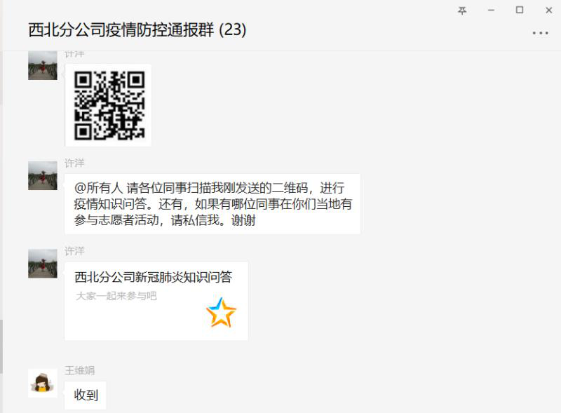 為提高廣大員工對新冠肺炎的了解,提高防控意識,掌握防控要點,共同打贏疫情防控阻擊戰,2月14日,西北分公司工會組織開展了新冠肺炎疫情防控知識網絡答題活動。