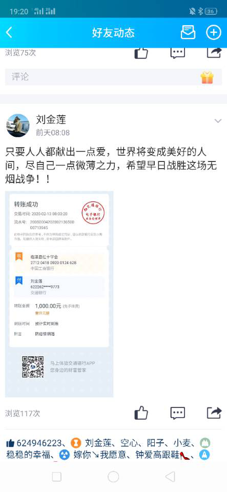 談到此次捐款,她表示自己的行為是一件小事,她說作為一名年輕母親,她看到那么多的醫(yī)護(hù)人員,能夠舍小家為大家,她深受感動(dòng),希望能夠?yàn)樯鐣?huì)做一點(diǎn)有意義的事情,她雖然不能到武漢一線去,但是希望盡自己的一份綿薄之力,奉獻(xiàn)一份愛心,幫助更多的困難人度過這次難關(guān)。