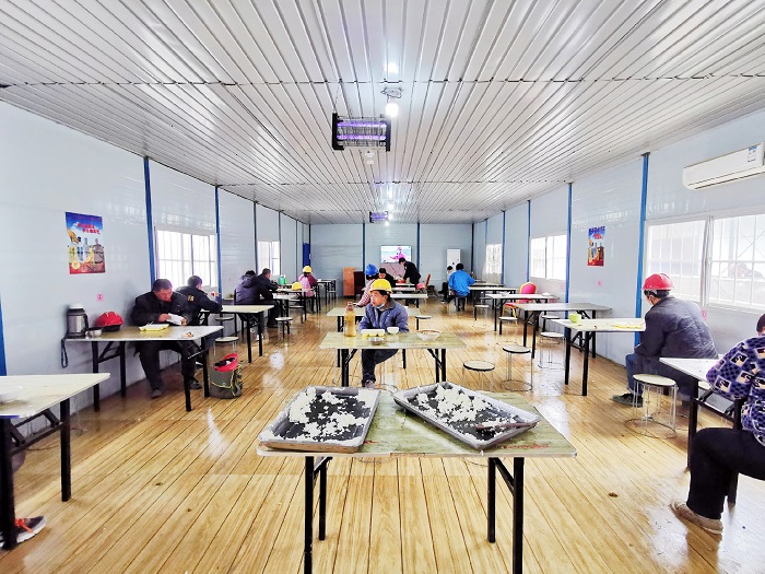 看得見的防疫配備,還有落在實(shí)處的防疫舉措。項(xiàng)目部開展員工返崗前14天健康在線管理,每位員工每日體溫、身體狀況、居住地、活動軌跡等信息,每天線上打卡、全員覆蓋。實(shí)行“生產(chǎn)網(wǎng)格化、吃住軍事化”,員工入“格”后,現(xiàn)場、宿舍、食堂“三點(diǎn)一線”管理,餐廳座位隔單排、菜飯統(tǒng)一打、就餐時(shí)間拉長,衛(wèi)生區(qū)域增加管理人員,人員分類管理,將返崗復(fù)工人員控制在最小單元,確保安全。同時(shí),生產(chǎn)流程重組,按項(xiàng)目緩急逐步恢復(fù)生產(chǎn)。