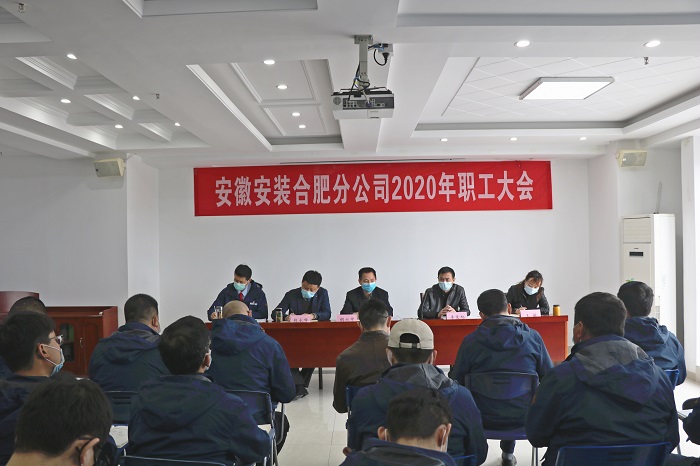 3月27日上午,安徽安裝合肥分公司召開2020年職工大會。公司黨委書記、董事長胡六中,紀(jì)委書記、工會主席李寬旭出席大會并講話。分公司黨支部書記胡迎東主持會議。