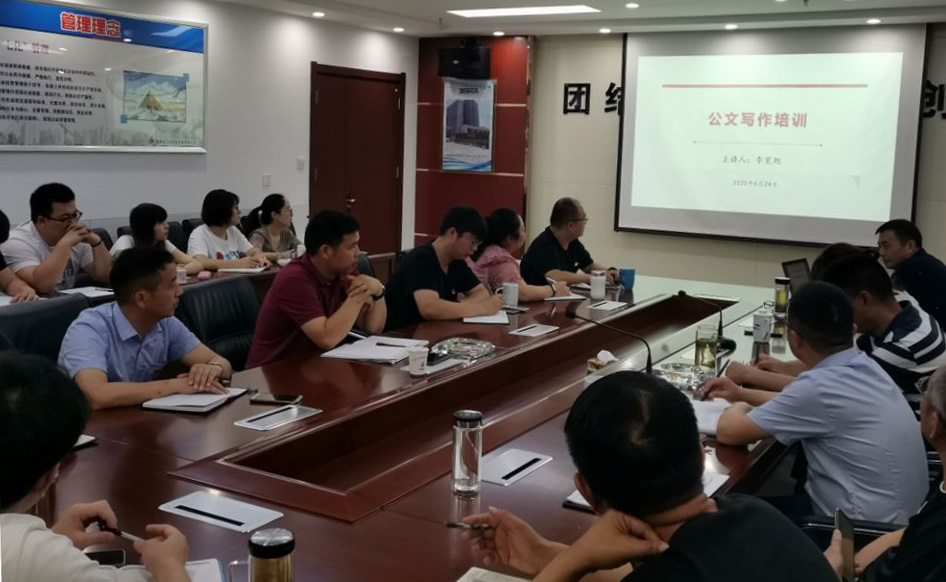 為提升蚌埠分公司員工公文寫作水平能力。6月24日上午,蚌埠分公司黨支部在會議室舉辦了一次公文、應用文寫作培訓班,分公司機關及項目部的員工參加培訓。本次培訓邀請公司紀委書記、工會主席李寬旭授課。