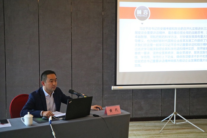 課上,黃代從四個方面宣傳貫徹了習(xí)近平總書記在安徽考察重要講話精神。一是提高政治站位,充分認(rèn)識習(xí)近平總書記考察安徽重要講話指示的重大意義。習(xí)近平總書記考察安徽重要講話指示精辟論述了我省當(dāng)前和未來發(fā)展的一系列方向性、根本性問題,在安徽發(fā)展史上具有極其重大的里程碑意義,習(xí)近平總書記專程視察中國寶武馬鋼集團(tuán)時發(fā)表的重要講話,也為我們做好國企工作提供了思想武器、指明了前進(jìn)方向、注入了強(qiáng)大動力。全體黨員領(lǐng)導(dǎo)干部要按照省委、省國資委統(tǒng)一要求,堅持全面系統(tǒng)學(xué)、融會貫通學(xué)、聯(lián)系實際學(xué),確保深刻領(lǐng)會重大意義。二是把握核心要義,深刻領(lǐng)會習(xí)近平總書記考察安徽重要講話指示的精神實質(zhì)。“兩個堅持”“兩個更大”,是總書記講話的核心要義,深刻回答了“十四五”乃至今后一個時期安徽發(fā)展在黨和國家全局中應(yīng)該承擔(dān)的使命、肩負(fù)的任務(wù),將安徽的發(fā)展層次、工作要求提升到前所未有的高度,是當(dāng)前和今后一個時期引領(lǐng)安徽發(fā)展的總方針、總遵循。三是聚焦重點任務(wù),切實答好加快美好安徽建設(shè)和集團(tuán)高質(zhì)量發(fā)展的必答題。全體黨員干部職工要深刻領(lǐng)悟全省領(lǐng)導(dǎo)干部“12個必答題”和安徽建工集團(tuán)“10個必答題”,緊扣目標(biāo)要求和各項任務(wù),謀深謀實貫徹落實的具體思路、促進(jìn)發(fā)展的實際舉措、推動工作的保障機(jī)制。四是營造濃厚氛圍,全面掀起學(xué)習(xí)貫徹習(xí)近平總書記考察安徽重要講話熱潮。安徽安裝公司要以“大學(xué)習(xí)”“大宣傳”“大調(diào)研”“大落實”為抓手,確保對重要講話精神融會貫通、入腦入心、明晰思路、落地見效。
