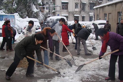 17日一早,在公司領導的親自帶領下,公司機關全體員工踴躍參與,懷著一份熱情,積極鏟雪除冰。經過近兩個小時的奮戰,將公司辦公樓及生活區大院的主干道積雪和冰塊鏟掃干凈,確保廣大職工和住戶的出行安全。