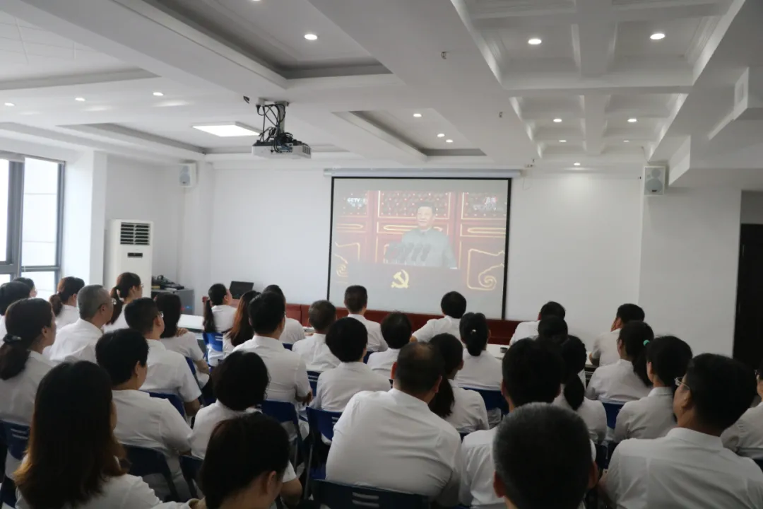 合肥分公司新宇藥業(yè)項(xiàng)目部人員集中觀看大會(huì)直播