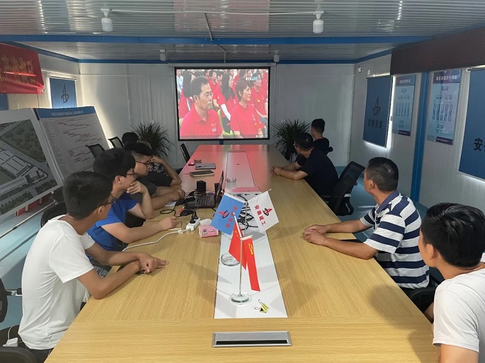 蚌埠分公司靈港項(xiàng)目部人員集中觀看大會(huì)直播