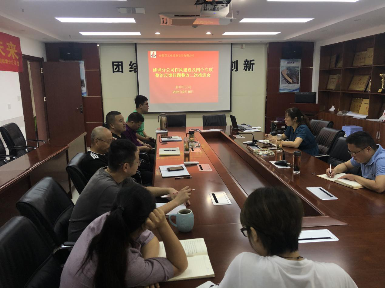 9月15日上午,蚌埠分公司黨支部召開“作風(fēng)建設(shè)及四個專項(xiàng)整治反饋問題整改二次推進(jìn)會”。分公司支委委員、班子成員、工管部、財(cái)務(wù)部、經(jīng)營部、綜合辦等相關(guān)部門負(fù)責(zé)人、具辦人員參加會議,會議由黨支部書記程茂麗主持。