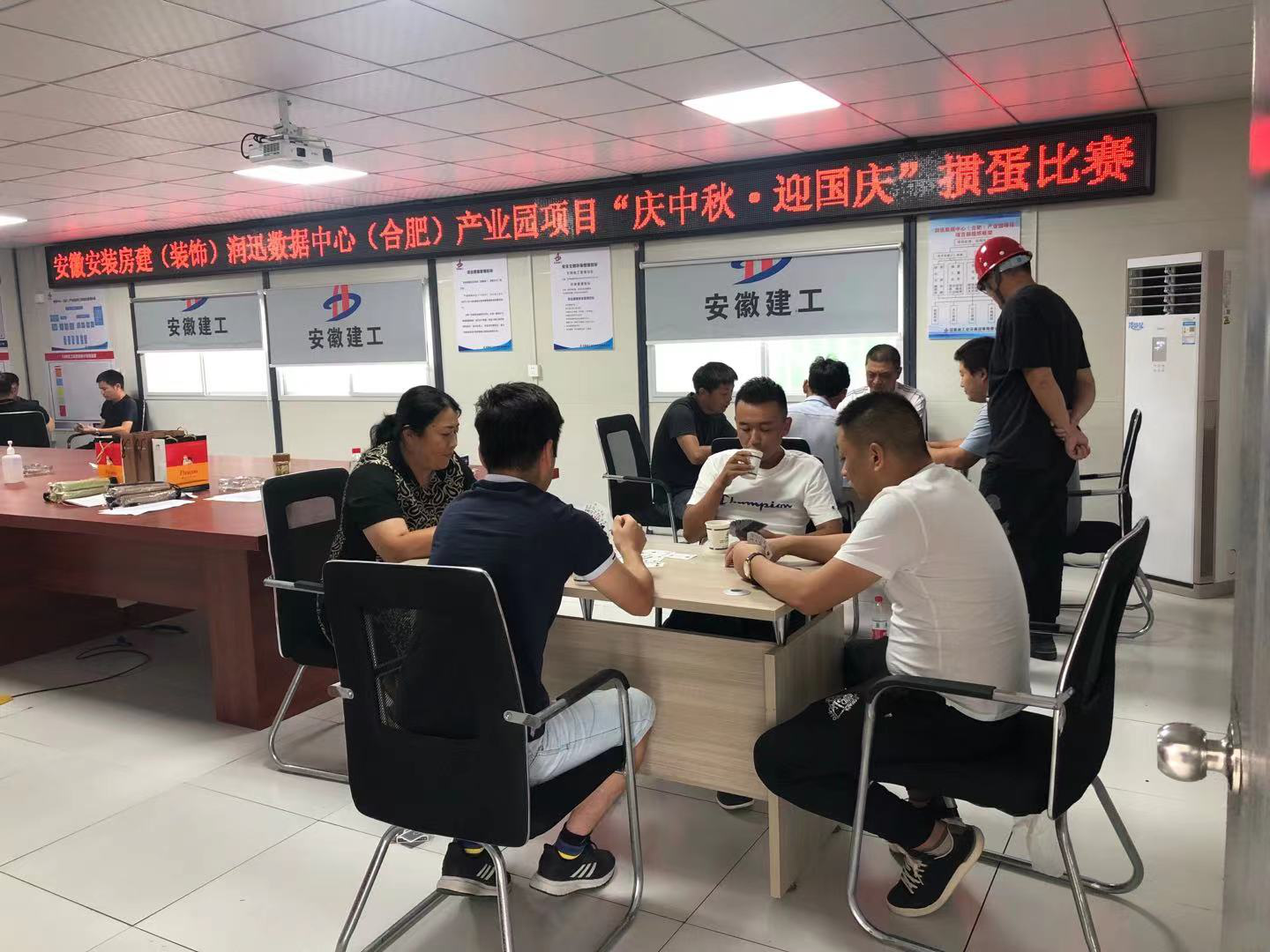 為豐富項目部員工的業余文化生活,營造員工健康快樂的良好工作氛圍,9月20日下午,房建(裝飾)分公司潤迅數據中心(合肥)產業園項目舉辦了“歡樂中秋·喜迎國慶””摜蛋”比賽。項目部全體成員及各分包隊計16名員工參加了本次比賽。