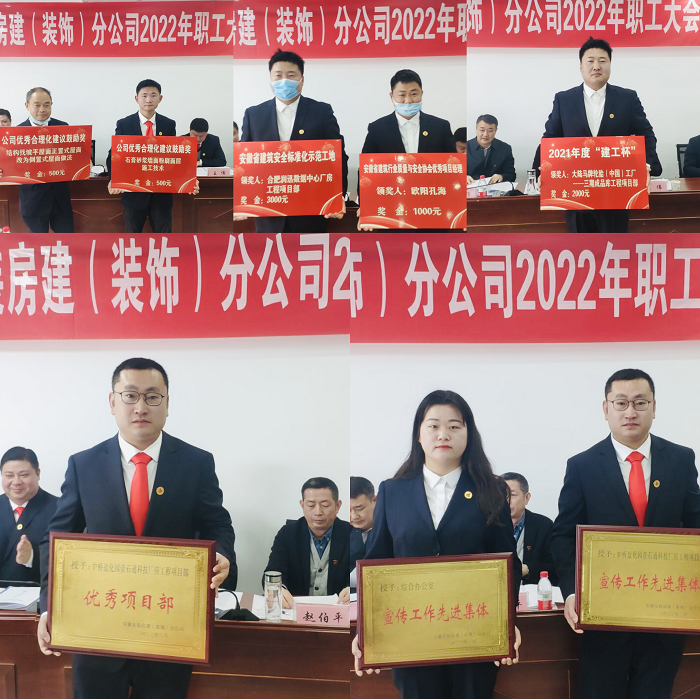 趙伯平對房建(裝飾)公司2021年取得的各項榮譽給予了充分肯定,并分析研判了當前市場形勢,他要求分公司深刻領會集團及公司職代會精神內涵,進一步落實集團及公司有關工作部署,針對下一步工作,提出四點要求:一是要以高質量黨建引領企業改革高質量發展,要進一步加強理論學習,提高黨性修養,堅持黨管干部,加強隊伍建設,夯實組織建設,筑強戰斗堡壘,堅持全面從嚴治黨,推進黨風廉政建設;二是要學習行業政策,積極融入集團產業鏈,學好用好政策優勢,將各項工作落實到貫徹“兩級”職代會精神中去;三是要堅持穩中求進,對照目標任務,扎實抓好全年各項工作,立足房建主業,適度發展多元業務,提升精細化管理水平,加強內控管理,防范化解風險。