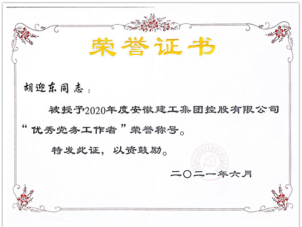 胡迎東,男,漢族,中共黨員,現(xiàn)任安徽省工業(yè)設(shè)備安裝有限公司紀(jì)檢監(jiān)察室主任。該同志從事黨務(wù)工作多年,時(shí)刻以一名優(yōu)秀共產(chǎn)黨員的標(biāo)準(zhǔn)來嚴(yán)格要求自己,工作中兢兢業(yè)業(yè)、勤勤懇懇、不遺余力,曾多次榮獲集團(tuán)優(yōu)秀黨務(wù)工作者、公司優(yōu)秀共產(chǎn)黨員和優(yōu)秀黨務(wù)工作者等光榮稱號(hào),出色地完成公司黨委賦予其優(yōu)秀黨務(wù)工作者的光榮任務(wù),為公司黨建工作發(fā)展作出了積極的貢獻(xiàn),是大家公認(rèn)的崗位能手,深受公司領(lǐng)導(dǎo)干部和職工群眾的一致好評(píng)。