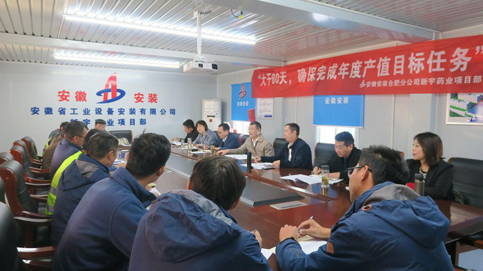 10月18日,安徽安裝在合肥分公司新宇藥業(yè)項(xiàng)目部組織開展了“大干80天,確保完成年度產(chǎn)值目標(biāo)任務(wù)”勞動(dòng)競(jìng)賽大討論,公司紀(jì)委書記、工會(huì)主席李楊,黨委委員、副總經(jīng)理趙伯平,公司工程管理部經(jīng)理龍海健及合肥分公司領(lǐng)導(dǎo)班子成員、工會(huì)負(fù)責(zé)同志、競(jìng)賽項(xiàng)目管理人員等參加。