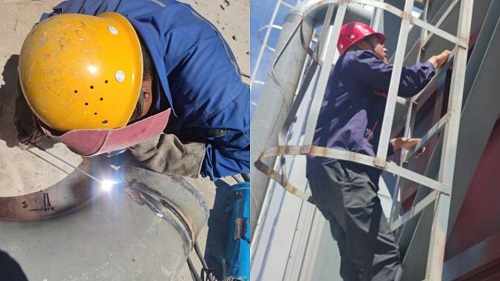 圖為甘肅西部鑫宇項(xiàng)目管道配管焊接及水箱焊接檢查場(chǎng)景