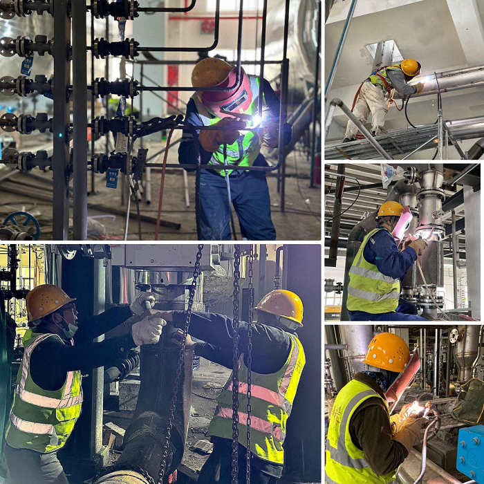 面對建設(shè)單位準(zhǔn)備在5月下旬進行試生產(chǎn)的目標(biāo)任務(wù),車間內(nèi)新增管線是否能夠按時完成就成為確保試生產(chǎn)順利進行的最大難題。為此,項目部精心組織、加強協(xié)調(diào),認(rèn)真部署,通過多次召開碰頭會最終達成最優(yōu)施工進度方案,做到明確每日進度內(nèi)容,合理安排施工人員,積極做好施工現(xiàn)場各項安全防護工作,在保證原有工程量的基礎(chǔ)上,對新增管線進行科學(xué)分解,新增突擊作業(yè)隊,采用“5+2”“白加黑”,多個小組多工作面同時施工的方法,開足馬力快速推進,從而大大提高了施工速度,提升了工作效率。