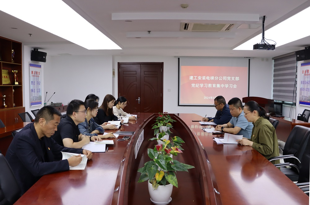 為進(jìn)一步貫徹落實(shí)黨紀(jì)學(xué)習(xí)教育工作部署,強(qiáng)化黨員干部遵規(guī)守紀(jì)意識(shí),5月27日上午,建工安裝電梯分公司黨支部開展了黨紀(jì)學(xué)習(xí)教育集中學(xué)習(xí)研討,分公司黨支部書記姚春靜主持會(huì)議,分公司全體黨員參會(huì)。