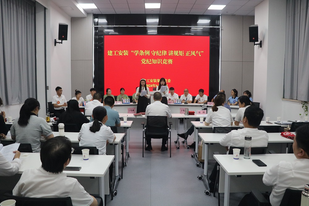 6月27日下午,建工安裝集團舉辦“學(xué)條例 守紀(jì)律 講規(guī)矩 正風(fēng)氣”黨紀(jì)知識競賽。公司黨委委員、紀(jì)委書記李楊,黨委委員、副總經(jīng)理董雙武,黨委委員、副總經(jīng)理樊剛出席活動,各黨支部書記、機關(guān)部門負責(zé)人以及參賽選手等40余人參加活動。