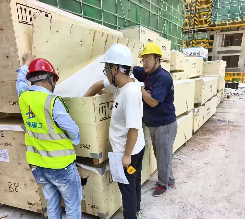 現(xiàn)場人員正在進(jìn)行到貨電梯檢查