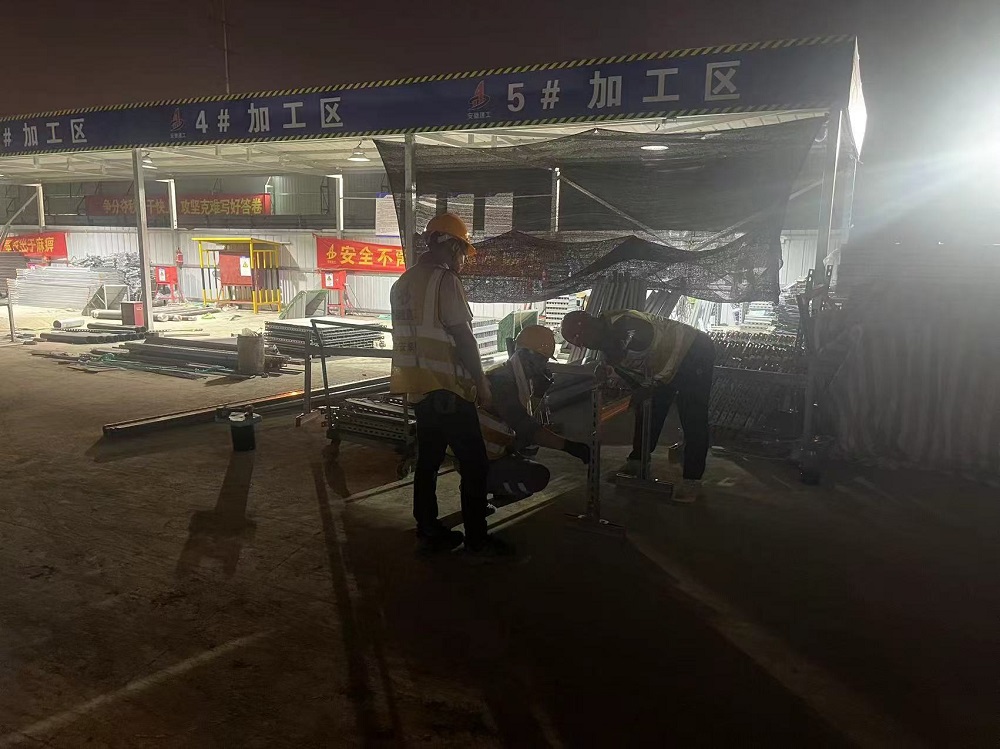 項目部全體管理人員緊抓施工節(jié)點,緊跟土建、鋼結構單位施工進度,全力統(tǒng)籌人、材、機合理高效入場,根據(jù)現(xiàn)場施工情況逐步優(yōu)化各專業(yè)施工方案,全力推進施工進度。目前,車間一整體防雷接地已完成60%,QA辦公樓預埋已完成90%,隨著土建單位工作面的交接,車間一5區(qū)、6區(qū)正在進行成品支架、虹吸雨水管道、排水管、通風管道等施工作業(yè)。