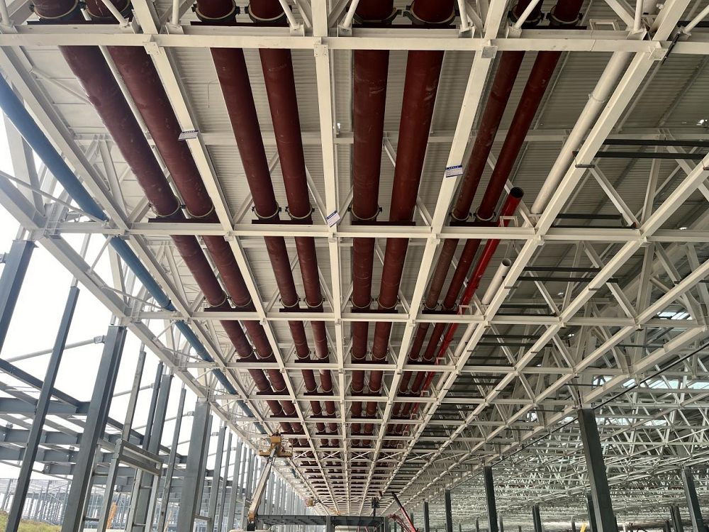 “優(yōu)方案”,項目部根據(jù)現(xiàn)場實際情況提前優(yōu)化吊裝施工方案,加快冷凍水管道安裝速度;并根據(jù)現(xiàn)場吊裝孔洞,轉(zhuǎn)變思路,定制8米螺旋焊管,大大加快了吊裝施工進(jìn)度。