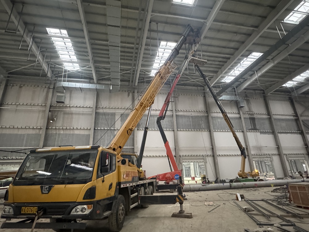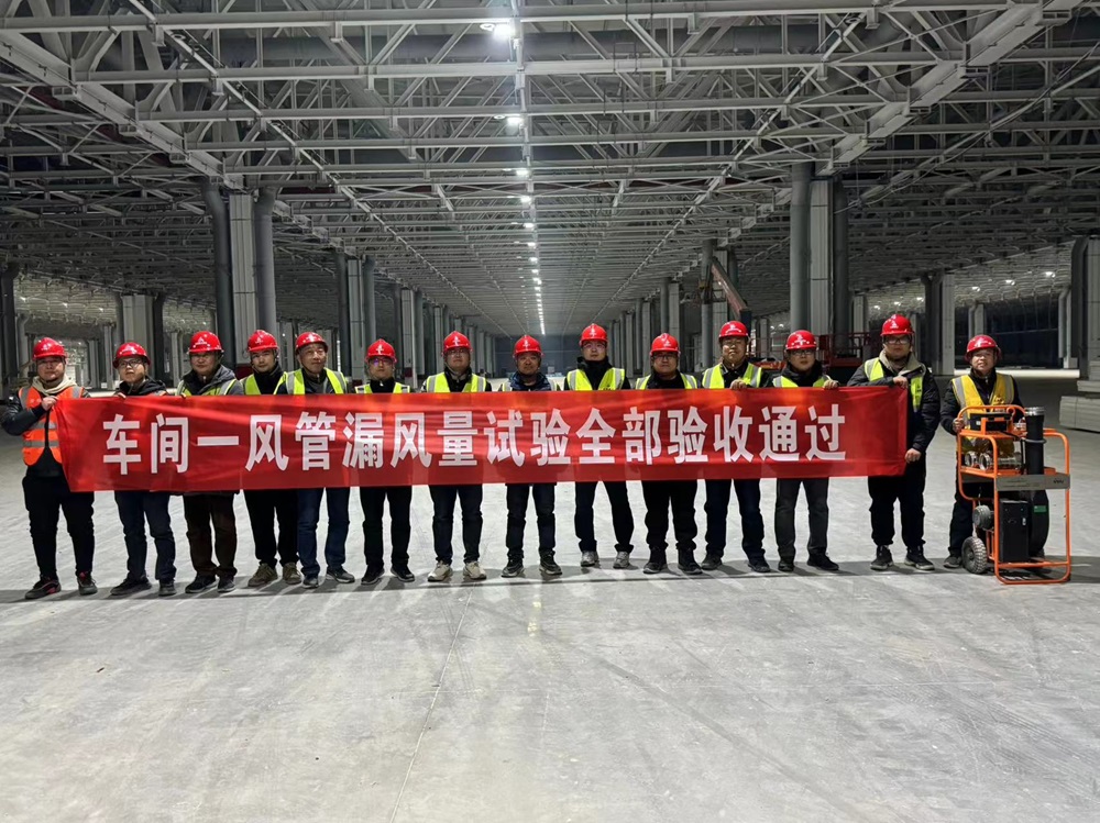 本周,車間一的風管漏風量試驗全部驗收合格,試驗達標率達100%。目前,廠房車間一焊裝車間的水電風系統(tǒng)試壓試驗與漏風試驗全部結束。焊裝車間內(nèi)水管保溫工作以及風管保溫工作正在同步開展,且已進入收尾階段。QA樓一層水電風施工已完成90%,即將移交給裝飾單位進場施工。車間一屋頂閣樓空調(diào)水管已完成50%,電力橋架已完成60%,重力流雨水管已完成100%。與此同時,沖壓車間已完成頂部主風管和虹吸管道的安裝工作,管道也在同步預制。