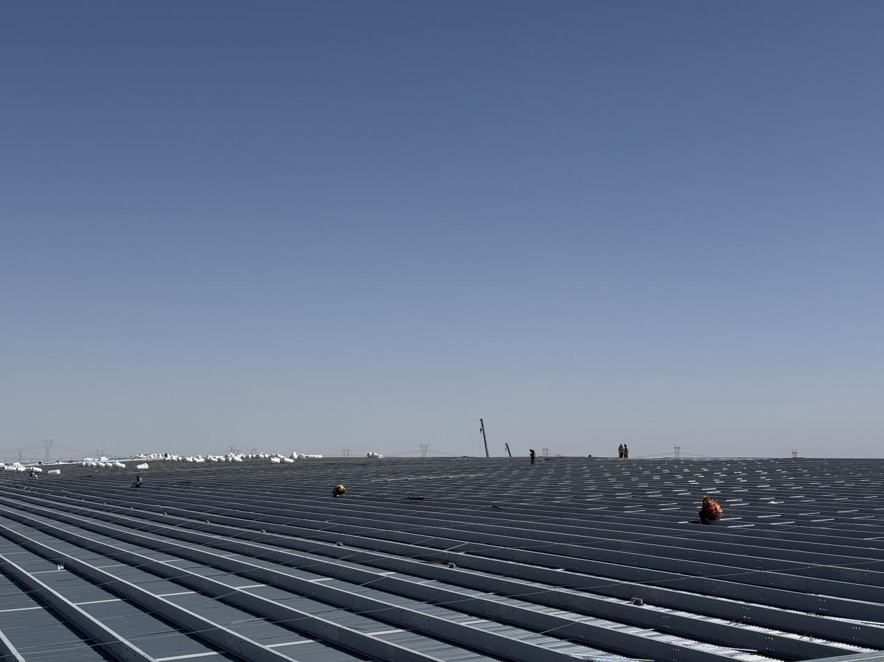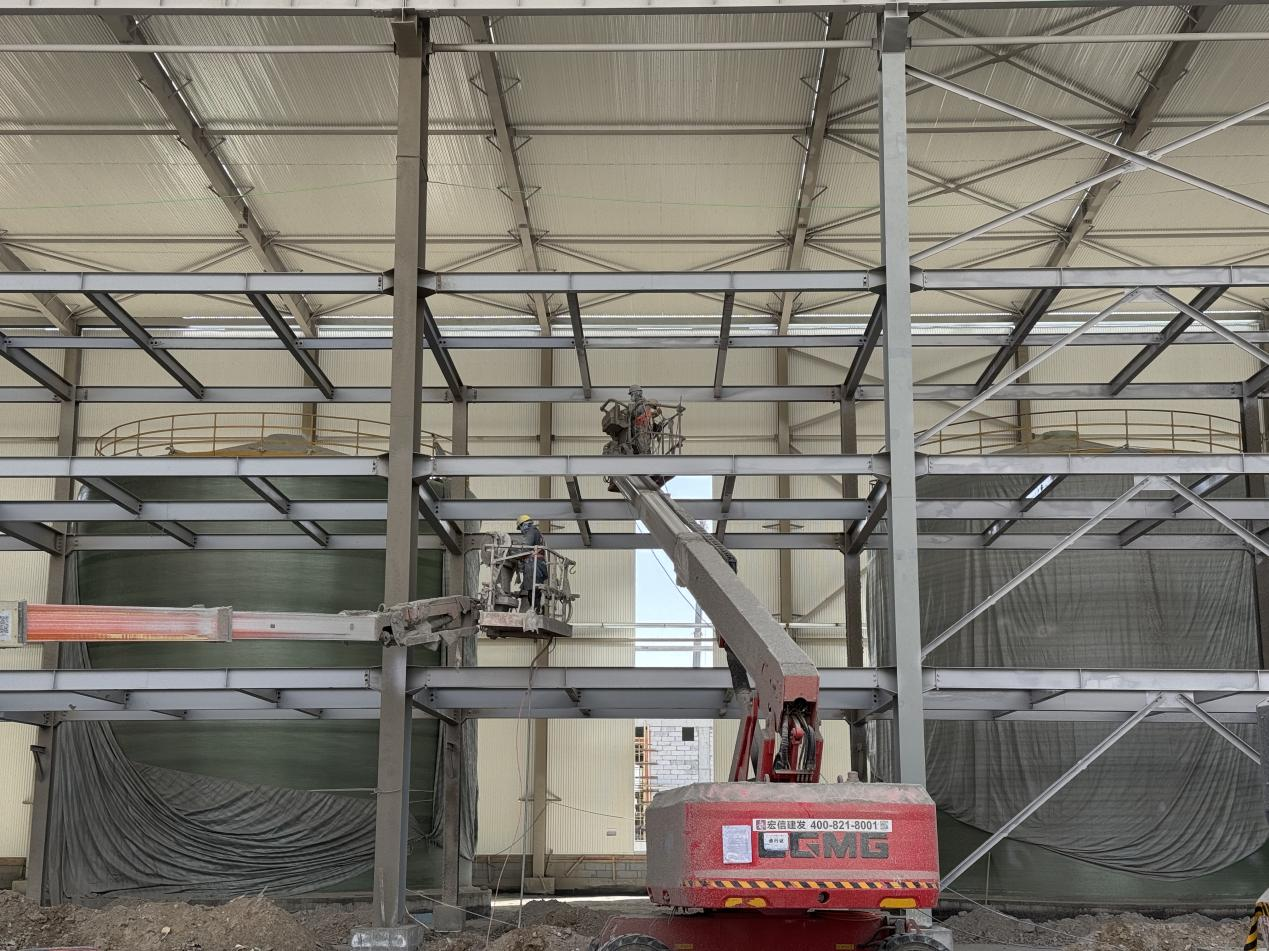 項目地處高海拔鹽湖區(qū),缺氧且淡水匱乏,施工環(huán)境惡劣,資源保障困難。面對不利因素,項目團隊迎難而上,積極尋找解決方案,為項目順利推進筑牢基礎(chǔ)。截至目前,項目已取得顯著階段性成果,廠房主鋼構(gòu)全部完成,管廊鋼結(jié)構(gòu)完成約95%,防火涂料完成80%,屋面及墻面圍護結(jié)構(gòu)完成約50%,配電房裝飾裝修工作有序進行,各項任務(wù)按計劃穩(wěn)步推進。
