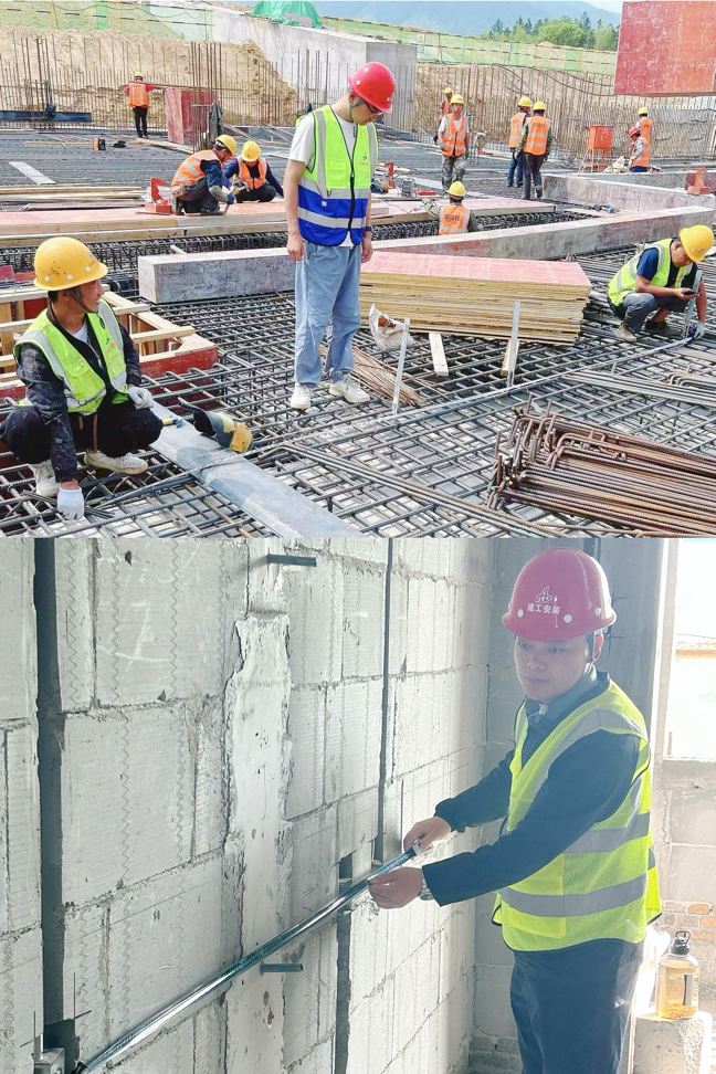 圖為涇青高速房建項目水電安裝專業(yè)分包工程項目基礎(chǔ)接地施工、插座點位復(fù)核
