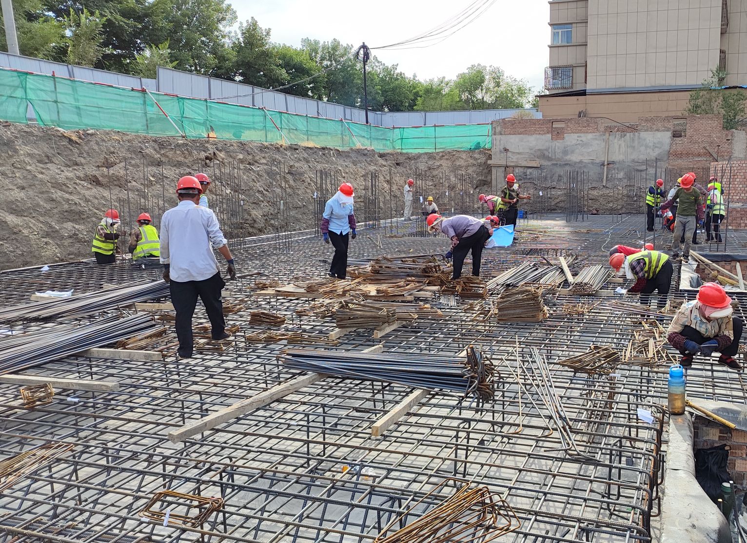 盛夏七月,熱浪襲人,建工安裝新疆烏蘇南苑項(xiàng)目部全體成員鉚足干勁、火力全開,奮戰(zhàn)在項(xiàng)目一線。該項(xiàng)目新建兩棟主樓,目前處于筏板基礎(chǔ)鋼筋綁扎。